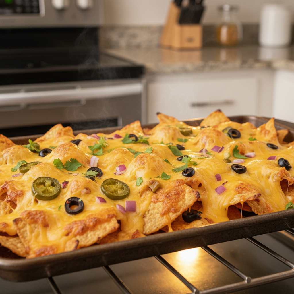 - Dodaj ser: Posyp połowę sera, rozłóż część jalapeño. Ułóż drugą warstwę chipsów i powtórz.