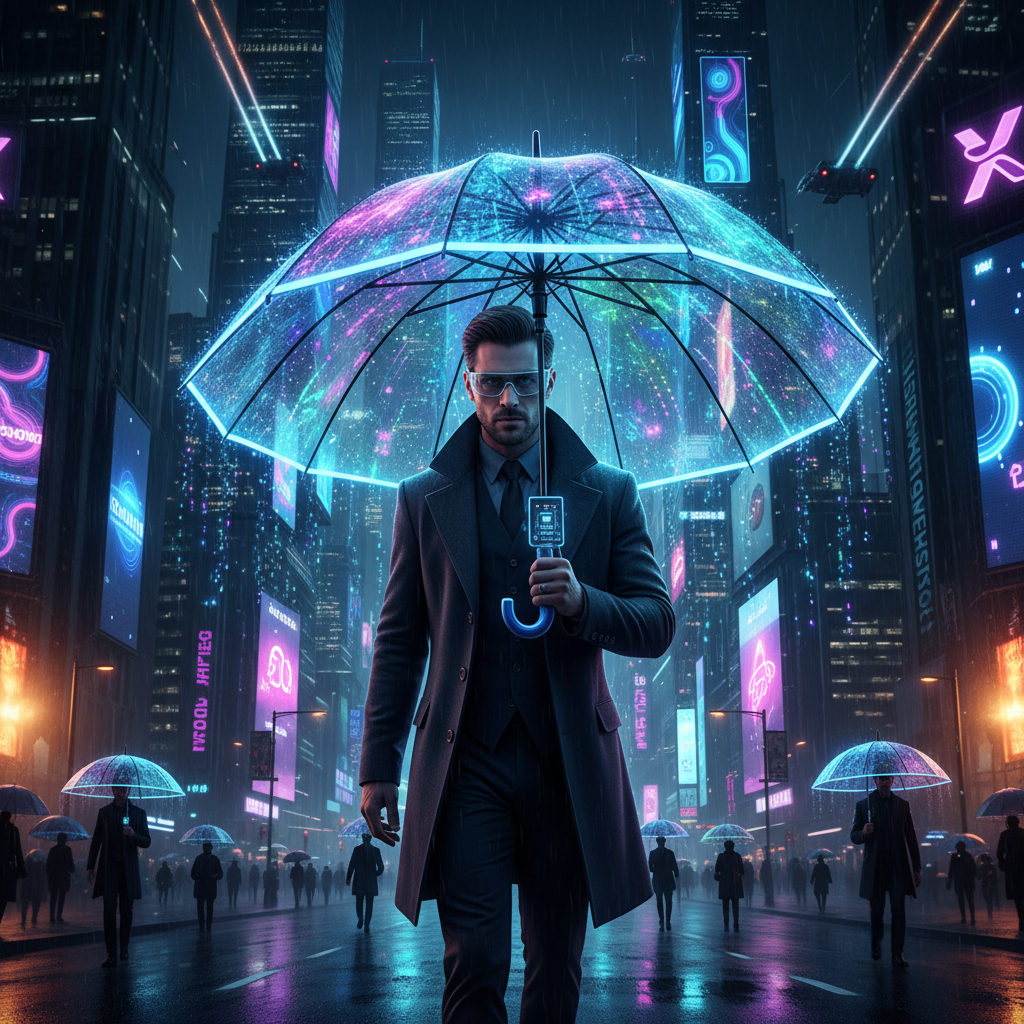 - Parasol na okładce „Blade Runner” – manifest miejskiego stylu przyszłości.